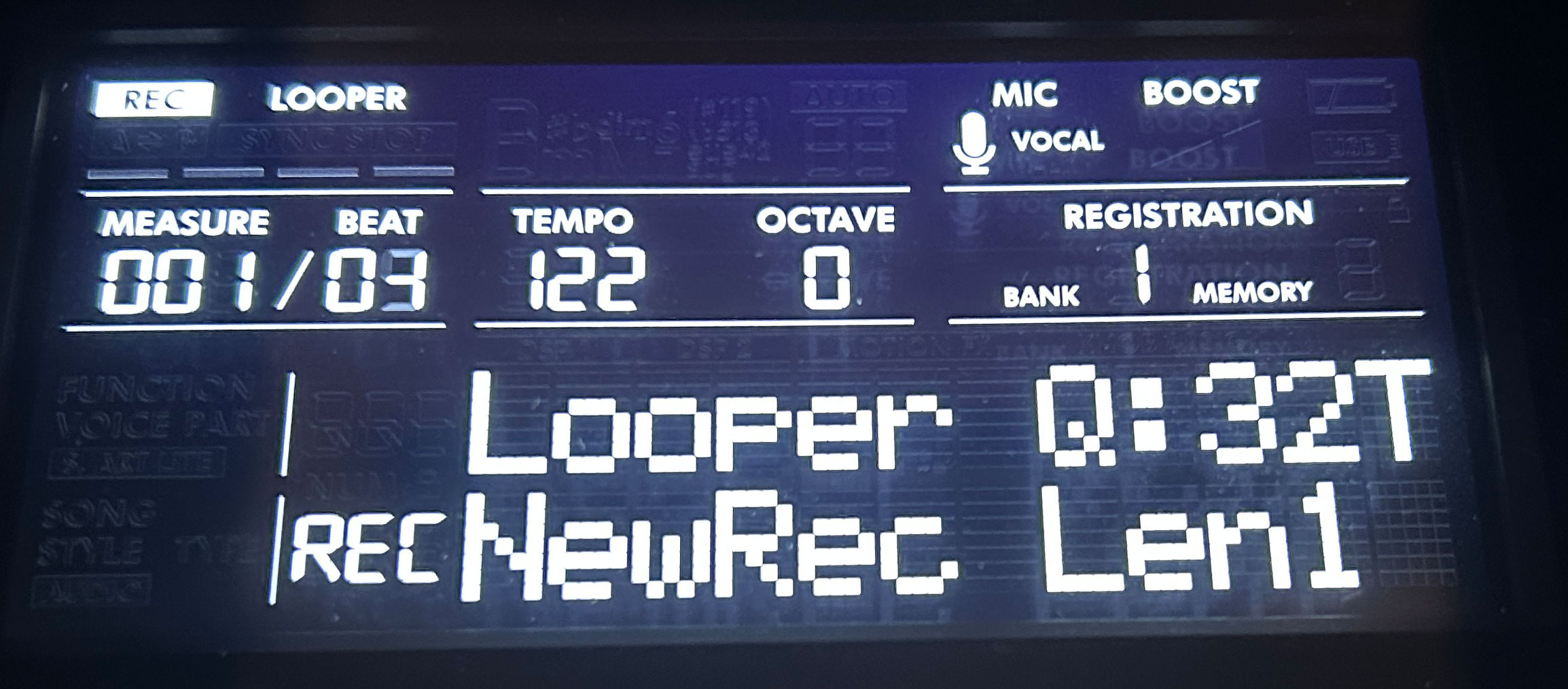 This feature was also on my PSR-EW425, and to be honest I never used it, and I don’t see myself using it on the PSR-E583 either, but if this is something that interests you, it is there. So to record a sample, press the CAPTURE button; you’ll be asked which slot to record, so press A-D; then the screen will prompt you to start recording – you can press the slot button again to start recording. Then you can either say something into the mic, or play your external audio source, then press the slot button again to stop the recording; any silent audio before or after your recording is supposed to be sensed and automatically deleted (at least from memory, this actually seems to work better than it did on my PSR-EW425). Then you can replay it by hitting the button, or loop it by holding LOOP and pressing the slot button (and press the slot button again to stop).