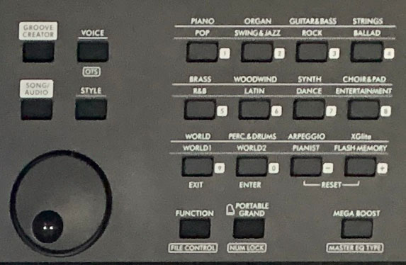The top right side has 2 SEPARATE sections of controls for selecting voices and styles. This is a MASSIVE IMPROVEMENT from the prior models, which forced you to use a SINGLE set of controls to access BOTH voices and styles. Even after owning a PSR-EW425 for a couple of years and using it ALOT, I STILL always found it frustrating: I’d repeatedly find myself changing my voice when I thought I was changing my style and vice versa.