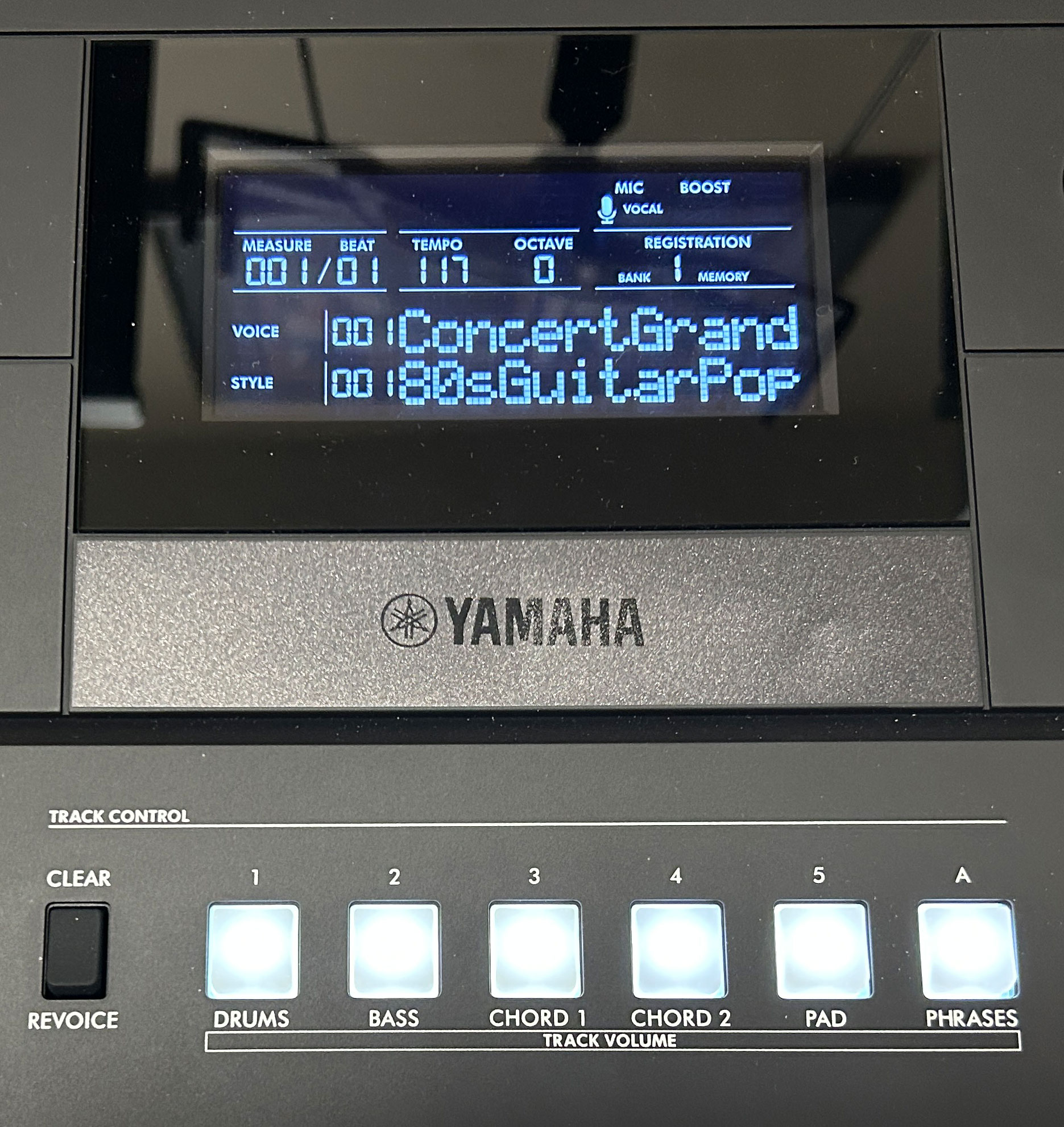 Now there is WAY too much to talk about here, so I’m only going to do a very quick and basic demo in this video. So just as a quick example; if you pick a style, mute a style part you don’t like, and choose a voice then press RECORD – the screen will indicate you’re in record standby mode; so you could enable accompaniment and an intro for example, then just start playing (the recording will start automatically); once you’re done, you can hit STOP. Then, you’ll see the Track A button is lit up (indicating there’s data there – you’ve recorded some accompaniment), but if you played along, you’ll ALSO see track 1 is lit up; that’s whatever you played in your left hand. So you can hit PLAY and listen to what you’ve got so far. Then to add another track, you could choose any other voice you like, hold RECORD and press the track you want to record that voice in. Then if you play that back, you’ll now hear everything together.