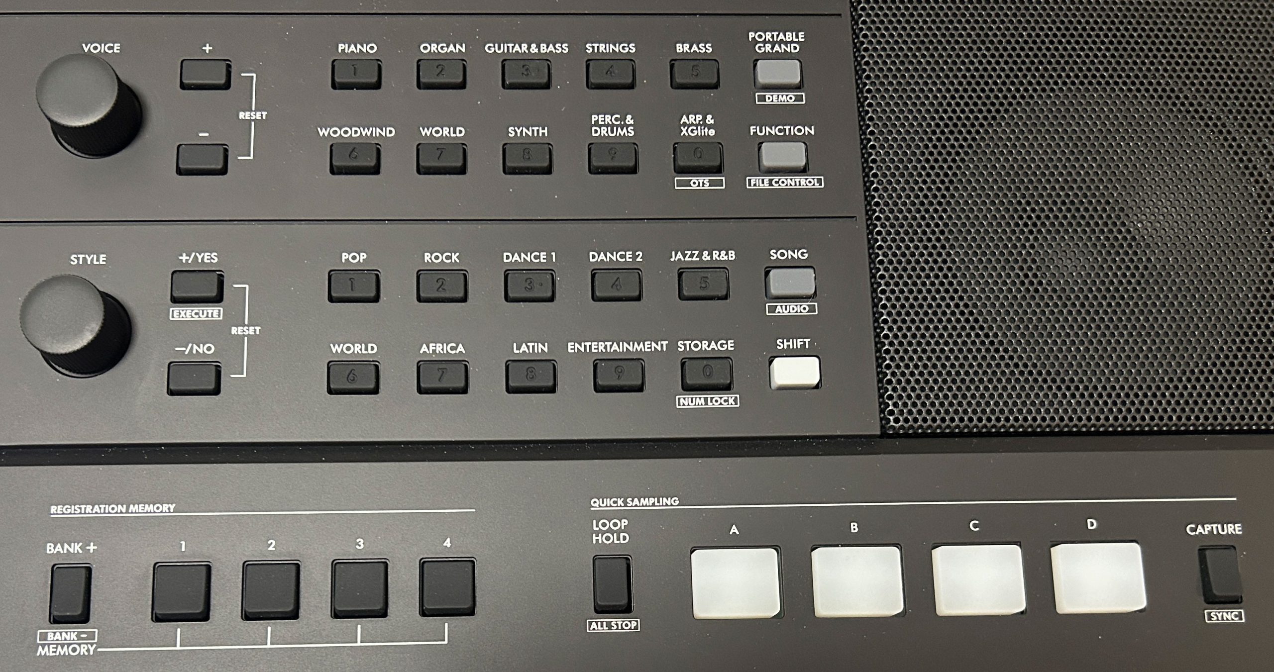 The new separated controls are a breath of fresh air and are SO much easier to use. Each section has a dial, +/- buttons and category buttons for easy navigation. Then below that we have the buttons for working with registration memory, and quick sampling.